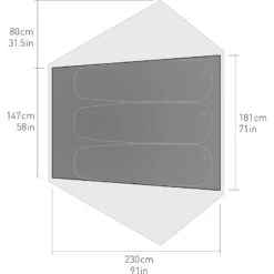 | Packmaß ca. | nur Gestänge: Ø 4 x 48 cm, nur Außenzelt: Ø 12 x 22 cm, nur Innenzelt: Ø 12 x 28 cm, komplett: Ø 13 x 50 cm |